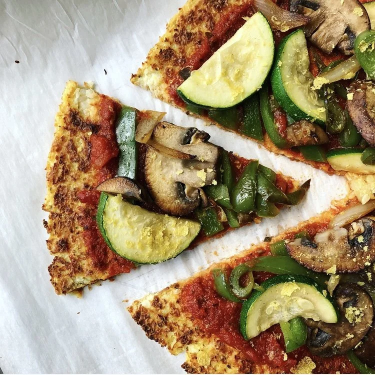 Combine the dough into a ball and place on a baking sheet lined with parchment paper. Using your hands spread the dough out into a circle 1/4”-1/2” thick.