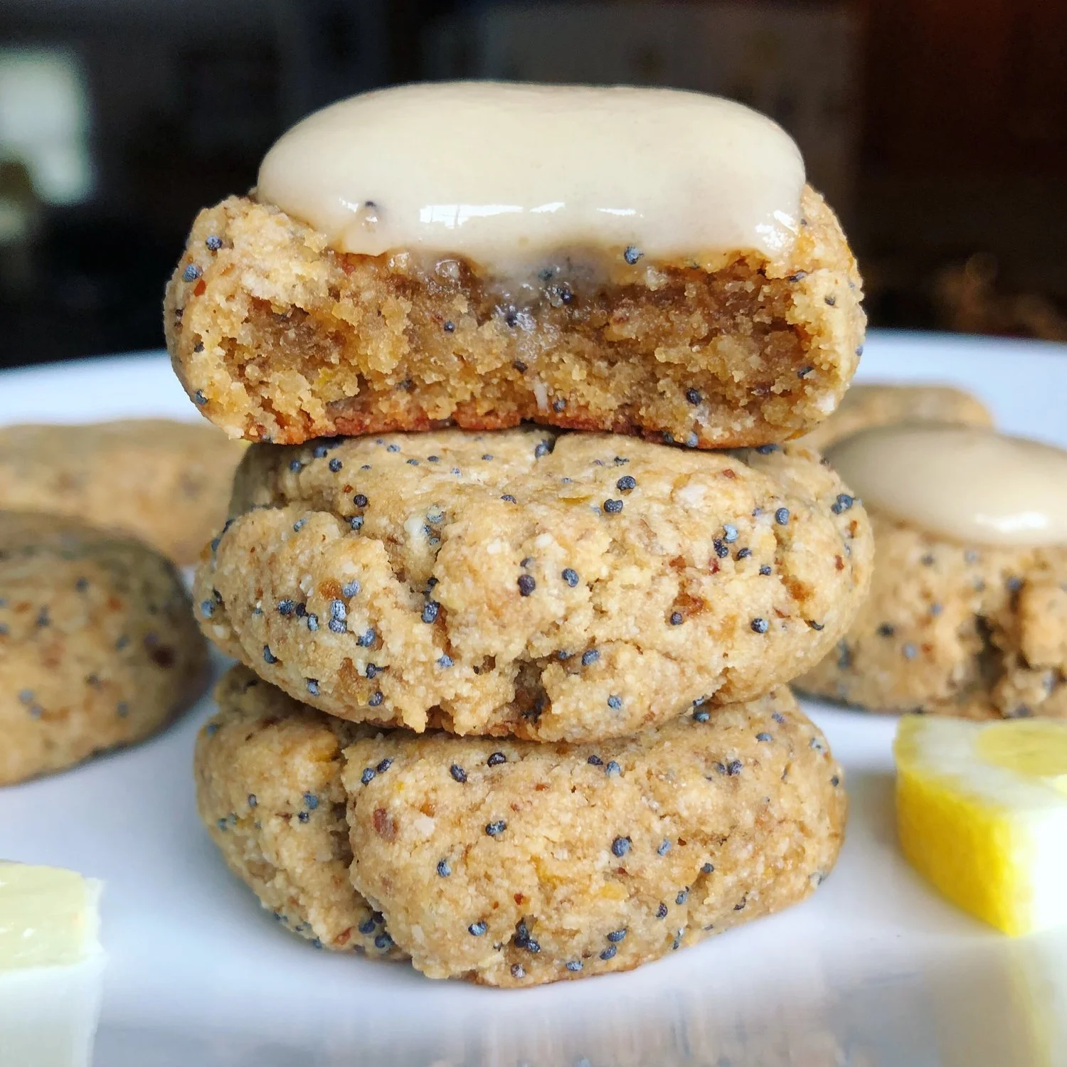 (Optional) To make a glaze combine 1/4 cup coconut butter, 2 tbsp. honey, 2 tbsp. lemon juice, and 1 tsp. of vanilla, and place on top each cookie.